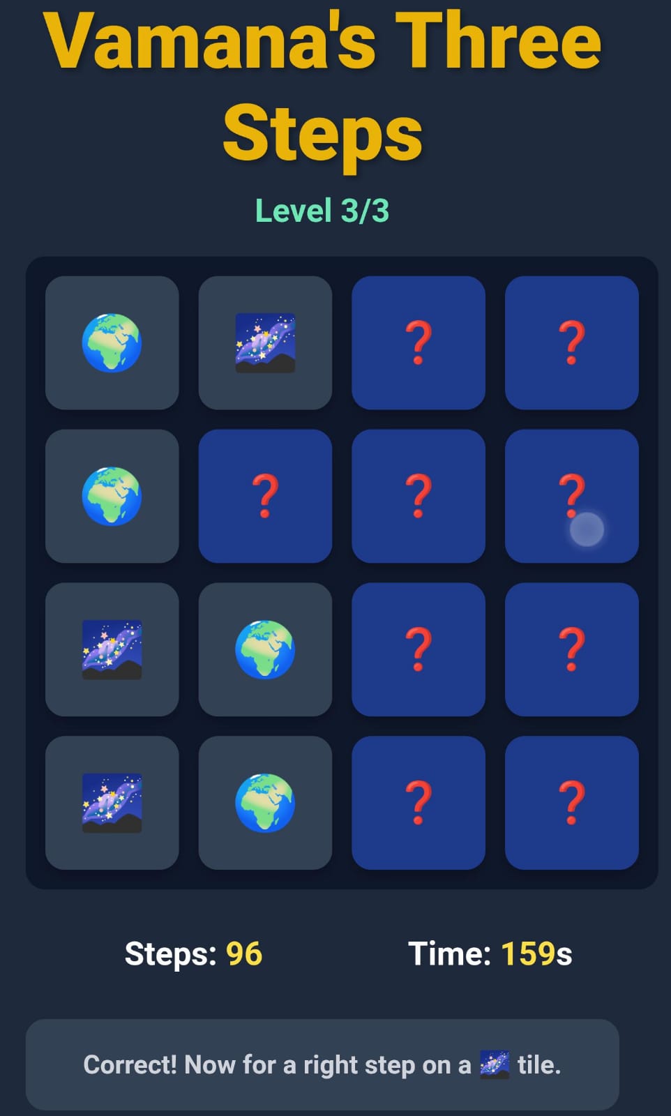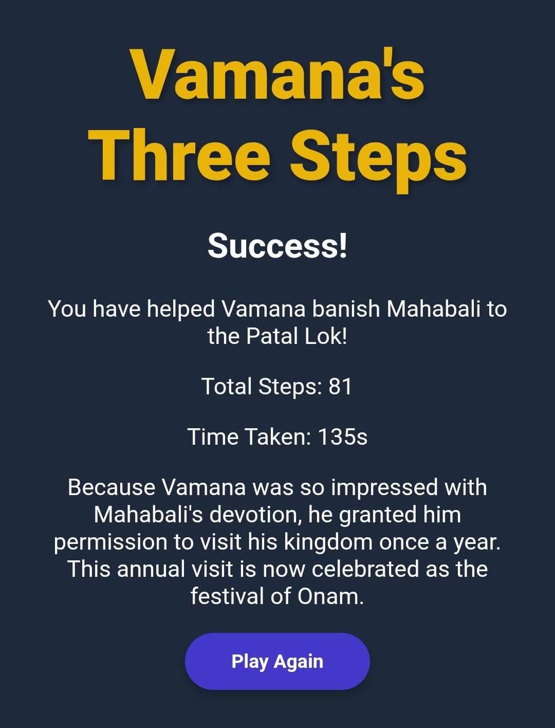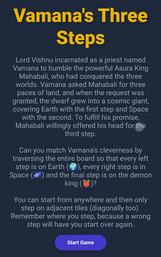 Embody Vishnu avtaar Vamana in this puzzle game, and take three steps to traverse the cosmos and outwit the Demon King.